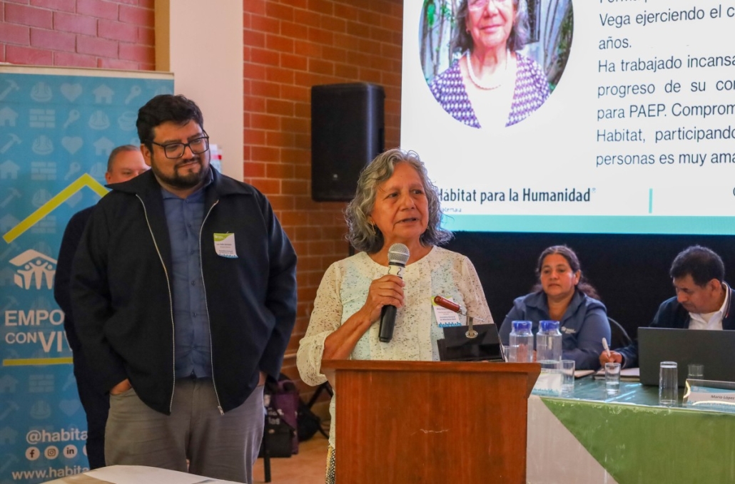 Lo que comenzó como una curiosidad por conocer el trabajo de la organización se convirtió en un compromiso permanente. Gracias a las capacitaciones y al acompañamiento de Hábitat, fue fortaleciendo sus conocimientos y su liderazgo. Dos años después de integrarse al voluntariado fue propuesta para asumir la Presidencia del Comité de Voluntarios, responsabilidad que aceptó con gratitud y que continúa desempeñando hasta hoy.